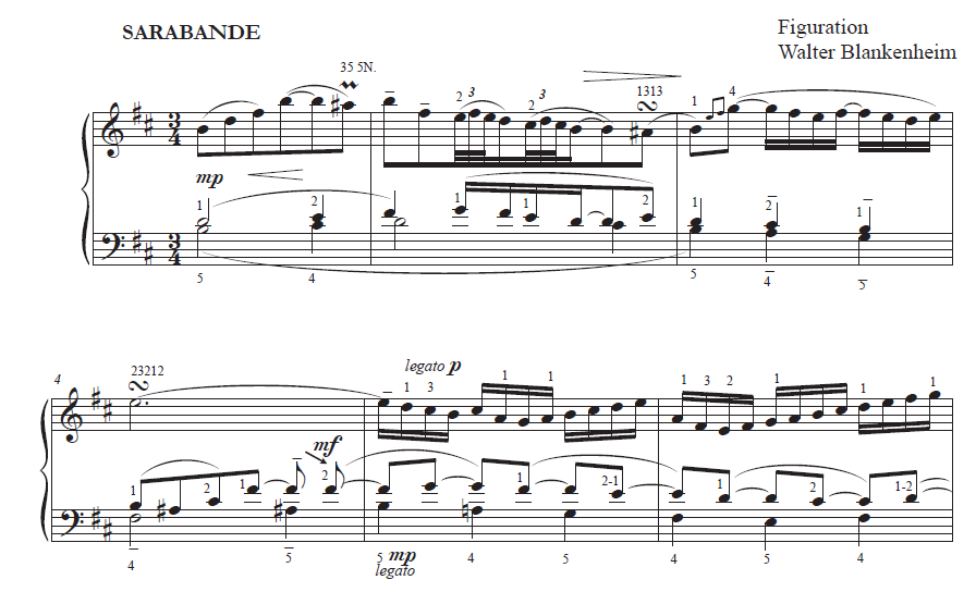 Seine eigenen Figurationen zu verschiedenen Tanzsätzen, insbesondere zu Sarabanden, zeigen, wie eine Wiederholung zu bereichern sein kann. Zahlreiche Pianisten, die Prof. Blankenheims Bachkurse in Deutschland und im Ausland besuchten, hatten das gleiche Gefühl: Diese Kurse eröffneten eine Welt, in der das Wunder und die Freude über die aufwändigen, vielfältigen und doch immer wieder unterschiedlichen Werke Bachs mit jeder neu erarbeiteten Komposition wuchsen.