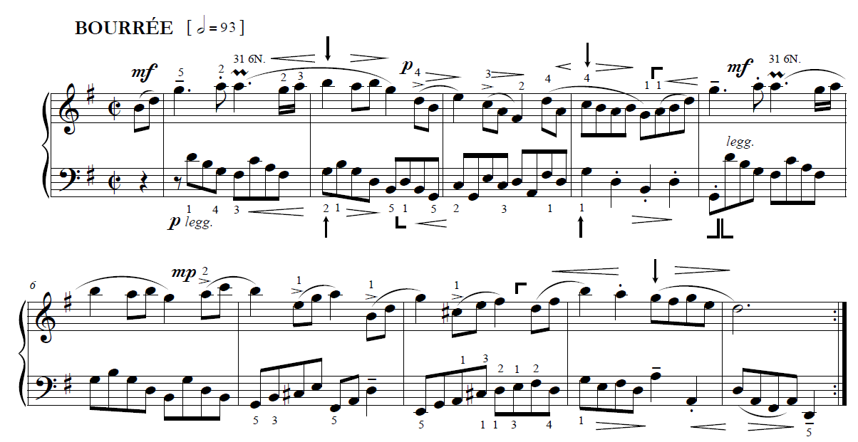 Einige Balkungen wurden getrennt und die Noten in anderen rhythmischen Gruppen zusammengefasst, um Struktur, Phrasierung und die Funktionen der Noten besser zu verdeutlichen. Das Thema der Bachschen Balkungen wurde in Yo Tomita’s Studienschrift untersucht (Deciphering the performance hints hidden in J. S. Bach’s quaver beams).